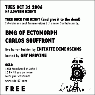 Take Back The Night (and give it to the dead) Event photos » 6th annual Samhaim party, hosted by Gay Marvine. FREE!! (with costume). Live horror fashion by Infinite Dimensions.