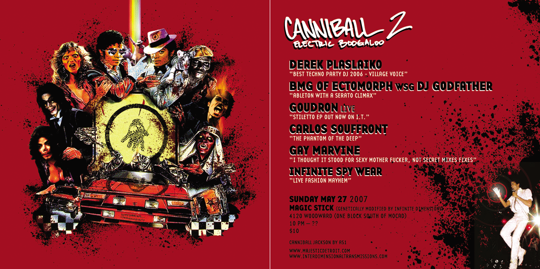 IT presents its vision for a great casual dance party with this years installment of the "Cannonball" series. Well I already killed Cannonball (with Sal P from Liquid Liquid) in 2004, and it has been undead since. First it was the Death Wish (with IBM & Serge), then the zombies came to play at the original Canniball (featuring Shake), and this year the cast went to visit the set of the Thriller video, as visualized by AS1.