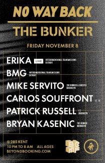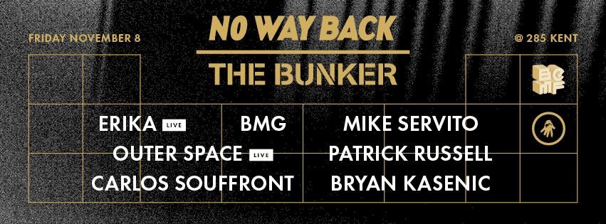 No Way Back is not a festival, it is not an event - it is a party. What began in an abandoned Detroit building with a leaky roof moved on to other legendary spaces in Detroit: the Bohemian National Home and 1515 Broadway. Aside from partnering with IT on these parties in Detroit, this will be the 4th time The Bunker has brought No Way Back to Brooklyn. This time we are partnering with BEMF to present the party in the very appropriate 285 Kent space for the first time. We are flying in Amber from IT in Detroit to visually transform the space, and of course Niksound will be in the house.